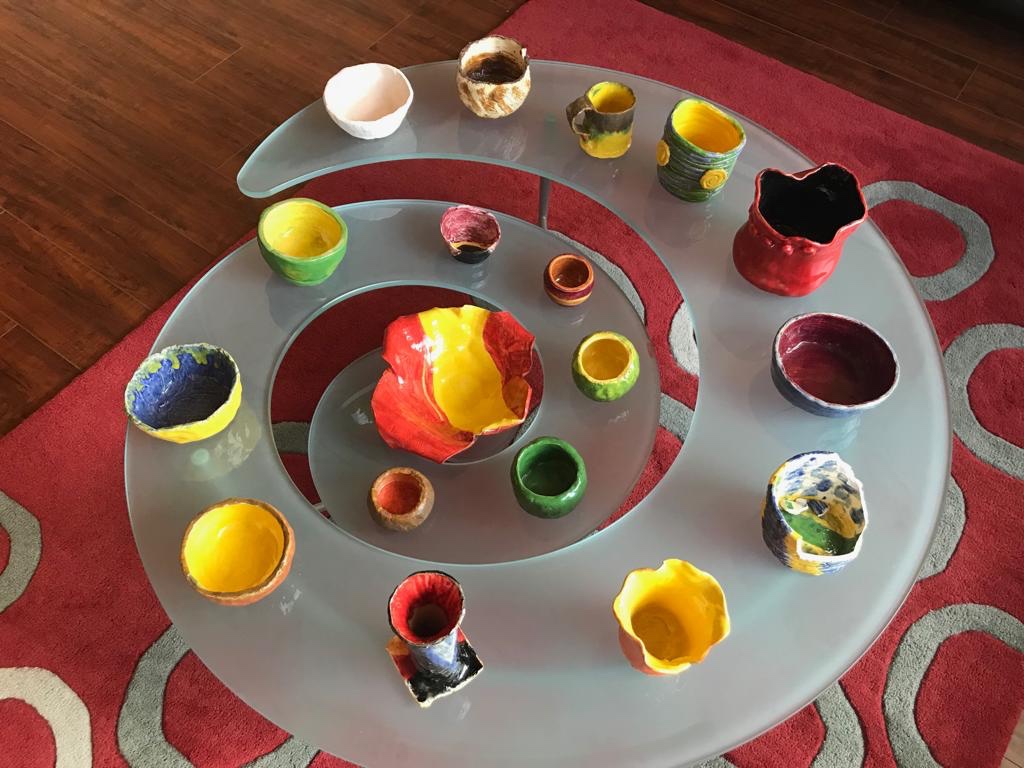 The rest of the world was on hold for four hours every week for twelve weeks when I was imbued in a state of bliss and deep meditation with clay. I started to look forward to each class to continue the dialog of creation and expression. Clay and I went on to manifest a whole lot of beautiful ideas. I submitted myself fully to the cosmic material as being the teacher of focus, living in the present and touching one’s deepest levels of bliss. The regularities and irregularities of clay also taught me the lesson of “wabi-sabi”, the acceptance of transience and imperfection in life.